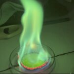 2024-07-10 / 最終更新日時 : 2025-02-20 コニー 物理や化学 炎色反応〜塩化銅、ホウ酸、塩化ナトリウムなど 左がホウ酸+エタノール、右が塩化銅+メタノールです。 塩化銅(Ⅱ)は、993℃まで熱すると、塩化銅(I)と塩素に分解する。塩素臭がしました! ちなみに、メタノール燃焼の発熱量は 22.7MJ/Kg(密度792 kg/m³ […]