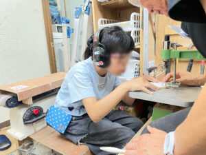 3人のスクール生と大学生にロボット作りに参加してもらいました。